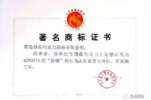 日前,青岛妙品巧克力股份有限公司的注册商标“妙缘”,正式通过省工商局组织的“山东省著名商标”评选,“妙缘”商标成功获得“山东省著名商标”称号。这是妙品股份公司品牌建设的一项重大成果。