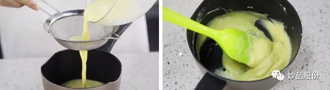 4、做好的卡丝达酱冷却后即可使用(如果要加速冷却,可以将奶锅坐在冷水里,并不断搅拌)。