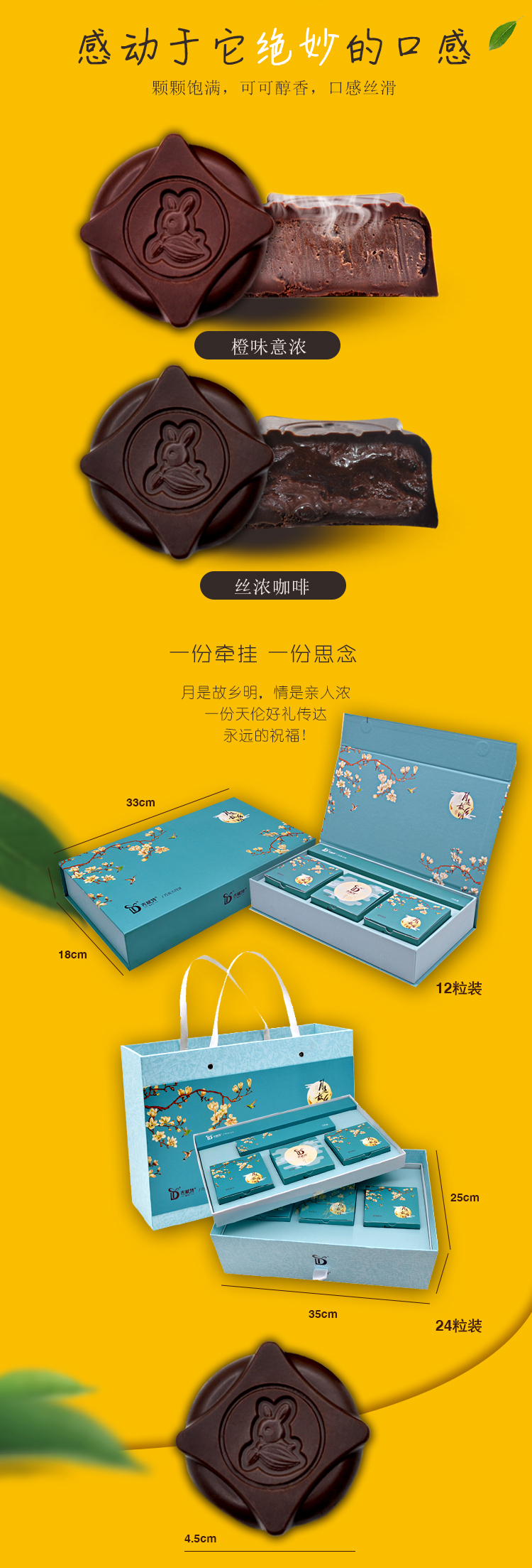 吉赋特中秋巧克力月饼礼盒,精选优质进口纯可可脂原料,有丝浓咖啡、榛橙口味两种口味,软心馅料被丝滑醇郁的巧克力团团包围,口感细腻绵柔,唇齿留香;产品新鲜﹒安全﹒健康,为中秋佳节馈赠礼品;吉赋特巧克力月饼礼盒送领导、送同事、送亲人、送朋友,悦享团圆。