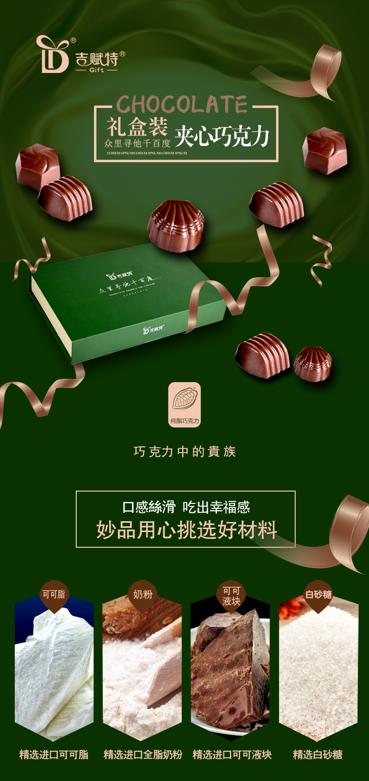 吉赋特众里寻他千百度巧克力礼盒,纯可可脂巧克力精心打造,口感丰富而醇厚。颗颗精致,粒粒深情,高端礼盒定制,原创设计,创意礼品之选,可定制专属于二维码。