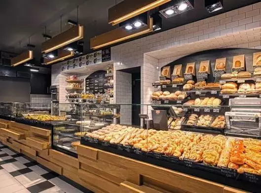 根据消费者的消费习惯来陈列。收银台可以在最外面,也可以在最里面,但餐盘和食品夹必须靠近门口。果酱得挨着吐司放,小零食必须紧挨在收银台的旁边。