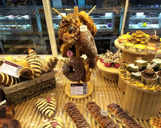 比如一排盒子蛋糕,那么应该有一些切面朝着消费者,有一些是侧面朝着消费者,让客人一眼就能看到整个产品的各个方面,一目了然的体现出来。