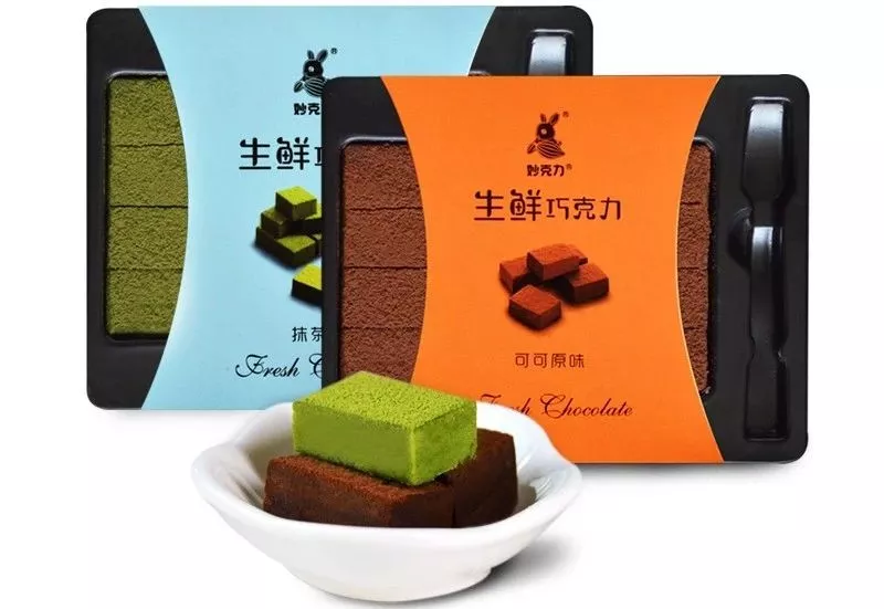 妙缘纯脂生鲜巧克力,两种口味可选,妙缘巧克力的专业研发团队研发,在各大烘焙店前屋商品界引领了一波生鲜巧克力的热潮。