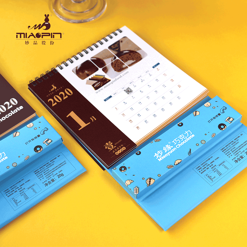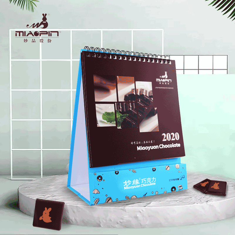 青岛妙品巧克力股份有限公司专业定制各种台历,纯脂巧克力薄片,口感醇厚丝滑。高端巧克力台历定制,可用于商务礼品赠送,活动礼品赠送,员工福利等。